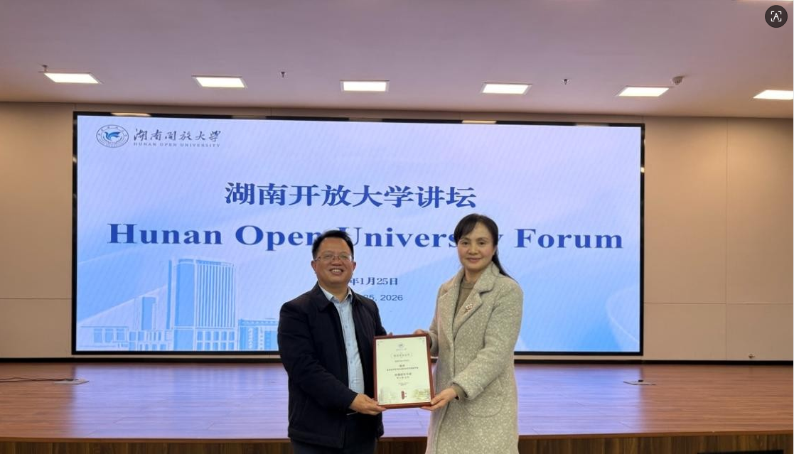 钟金霞为李小球颁发开放大学讲坛专家纪念证