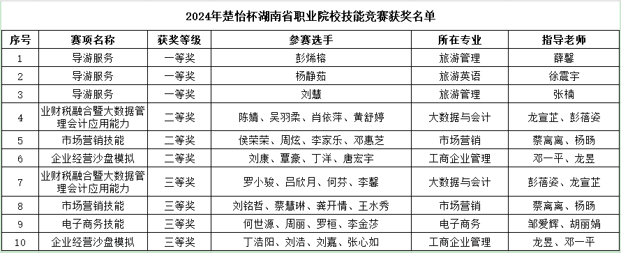 经济管理香蕉视频黄片在2024年度 “楚怡杯”湖南省职业院校技能竞赛中喜获佳绩