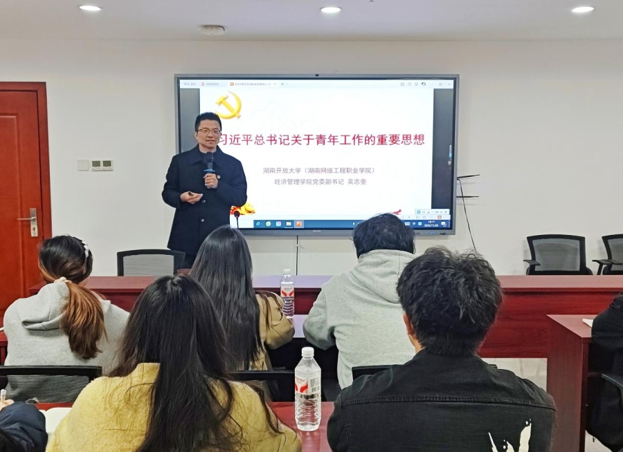 2025年11月25日下午 香蕉91视频APP,经济管理香蕉视频黄片党委副书记吴志奎在终教楼1314教室为党训班全体学员讲授主题为“习近平总书记关于青年工作的重要思想”专题党课,本次党课围绕青年工作的战略地位,青年运动的时代主题和青年一代的健康成长三个维度展开系统阐释,旨在深化青年学子对新时代使命担当的认知。