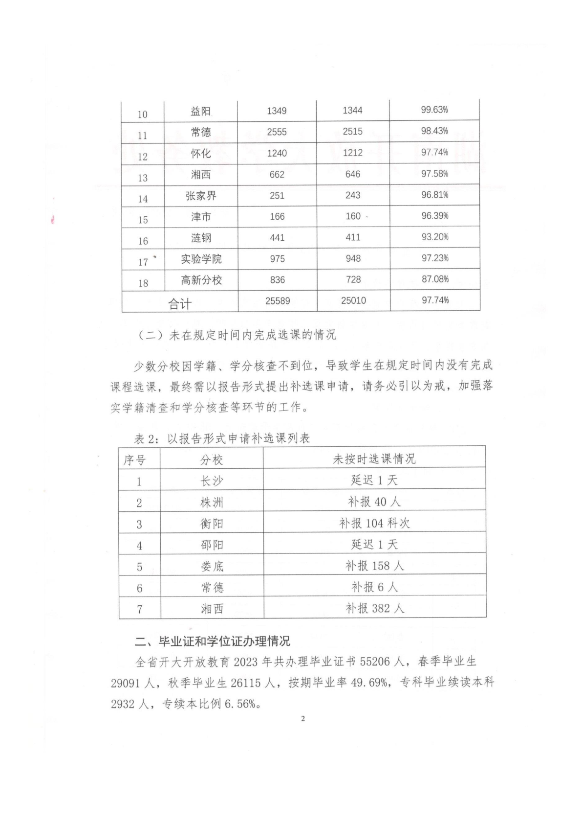 湘开大教[2023] 85 号:关于全省开放教育2023年学籍工作情况的通报