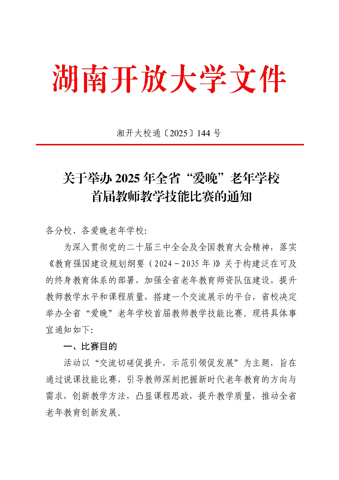 关于举办2025年全省“爱晚”老年香蕉成人臿臿在线观看首届教师教学技能比赛的通知