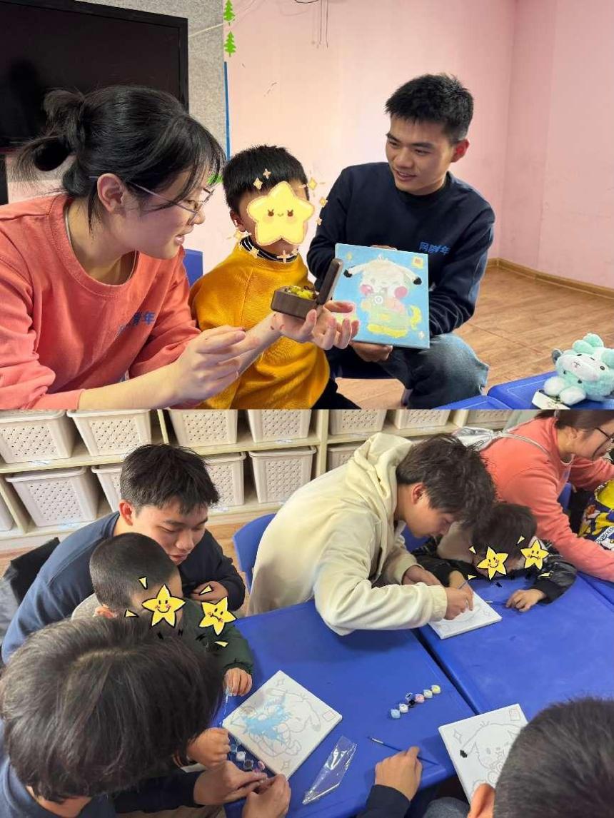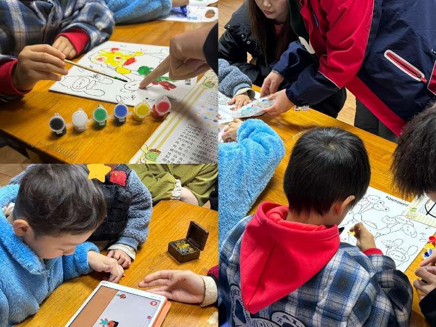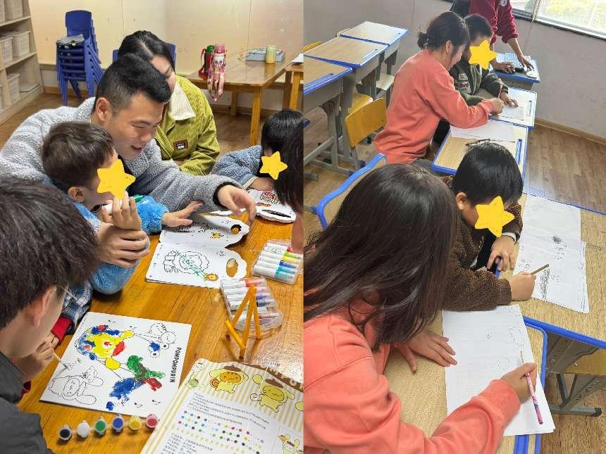 部分志愿者陪孩子们进行了绘画创作 下载日本香蕉视频,鼓励他们尽情涂鸦,画出心中所想,并就画作内容与孩子们进行交流,锻炼其颜色识别及输出表达能力,在志愿者们温柔耐心地陪伴与教导下,孩子们天马行空地运用色彩,玩的不亦乐乎。