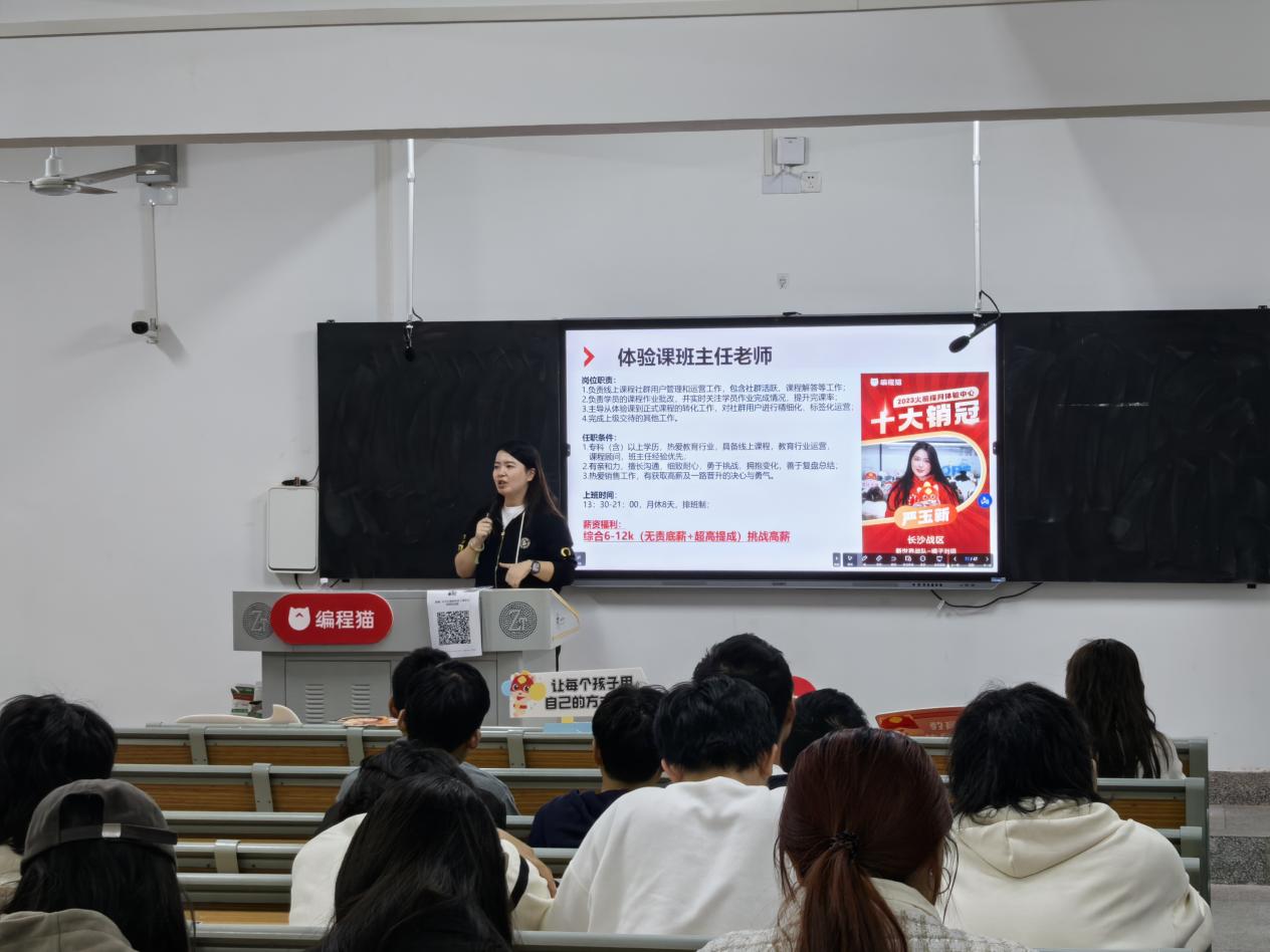 本次专场招聘面向我校计算机专业学生,招聘体验课班主任老师,主要负责线上课程社群用户管理和运营工作 香蕉成人臿臿在线观看,招聘会由“编程猫”长沙分公司人力资源副总监珏慧主持,她介绍了少儿编程的行业背景及公司情况及相关待遇。