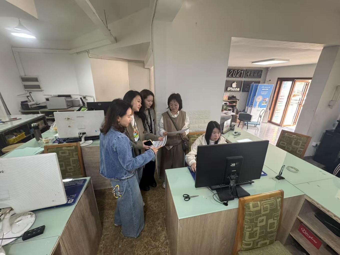 (图1:艺术设计教研室教师走访丰言快印调研25届毕业生岗位实习情况)