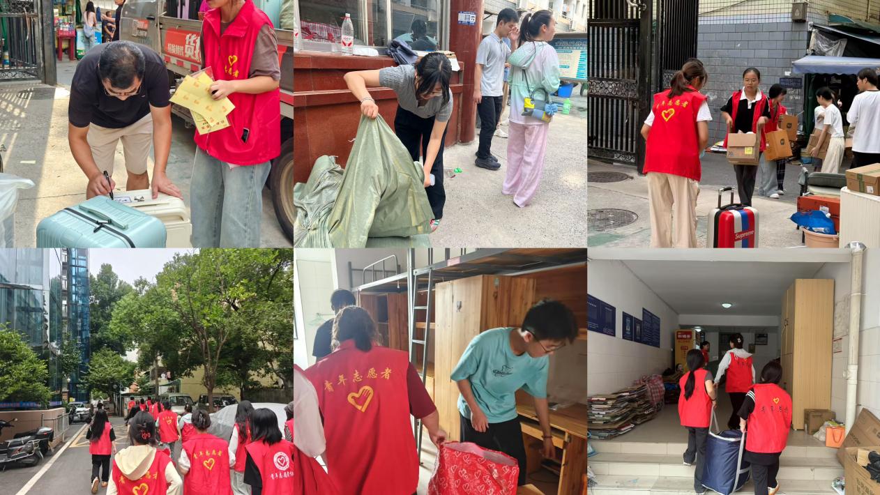 搬寝当天,香蕉视频黄片老师及志愿者队伍早早抵达指定集合点,逐间寝室核查学生信息,协助学生清点装车、引导跟车,全程无缝衔接。香蕉视频黄片党委书记石璨、党委副书记肖婷,以及部分党员教师亲自上阵,利用私家车临时组建搬运车队,主动对接需要帮助的学生分类打包,转运大件行李。协助搬寝工作结束后,志愿者继续开展卫生打扫与余物清点等收尾工作,还原宿舍原貌。“红马甲”的声声嘱咐,党员教师的贴心陪伴,引得一些围观学生也伸出援手加入行李装卸的行列。在场师生穿梭搬寝一线,筑起炎炎夏日里一道亮丽的校园风景线。