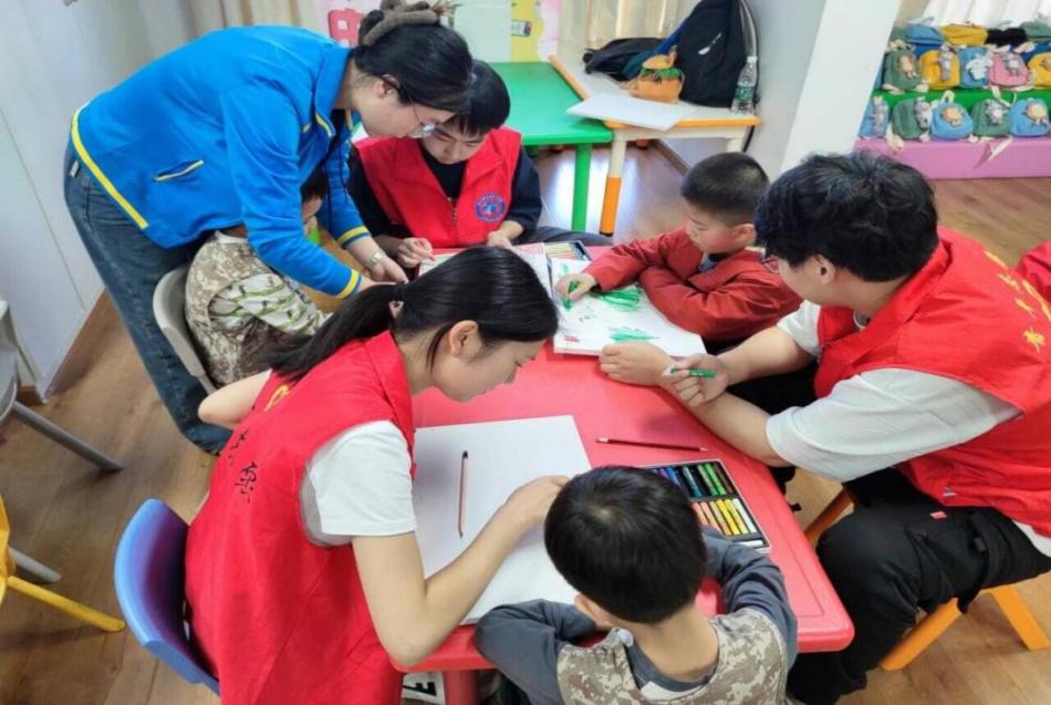 志愿者与自闭儿童“大手牵小手”共同完成绘画