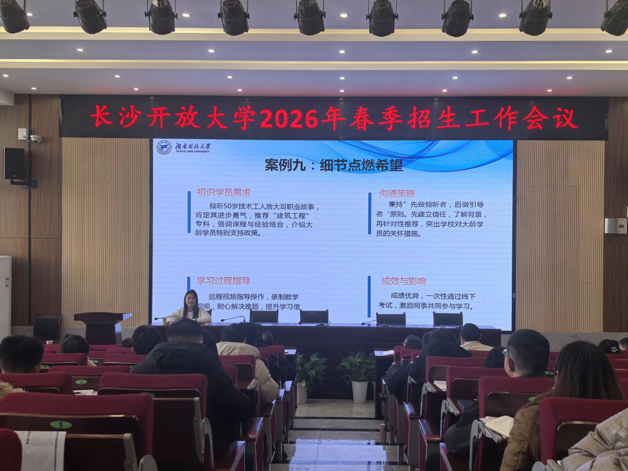 1月9日下午 香蕉91视频APP,长沙开放大学召开2026年春季招生工作会议,全校教职工参会,会上,我院青年教师肖琼应邀作招生与教学支持服务工作经验分享,以鲜活案例与务实理念为参会人员提供了有益借鉴。